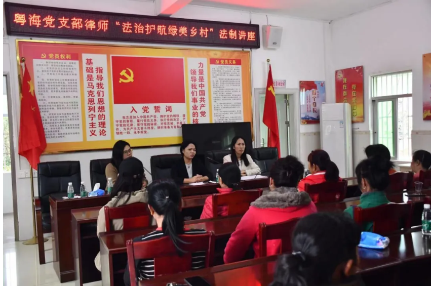 此前,粤海党支部还到吴川市长岐镇良村举行了“粤海党支部律师‘法治护航绿美乡村’法制讲座”,为普及“绿美乡村”建设做法制宣传,以尽律所一份力量。